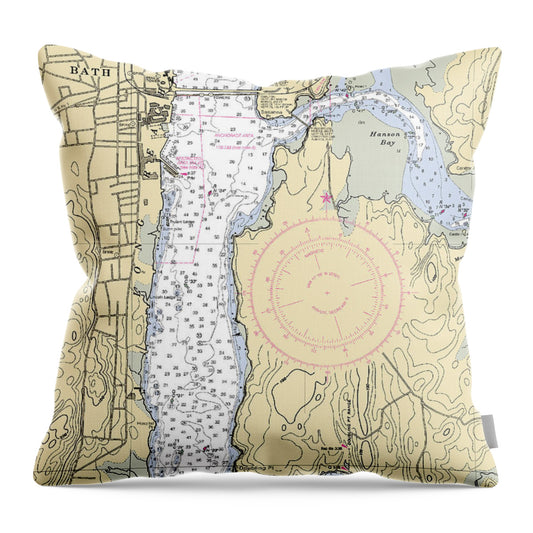 Bath-maine Nautical Chart - Throw Pillow