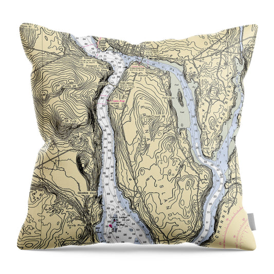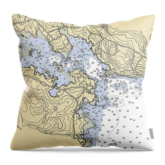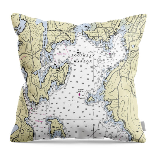 Boothbay Harbor Maine Nautical Chart - Throw Pillow