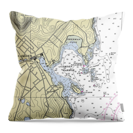 Camden Maine Nautical Chart - Throw Pillow