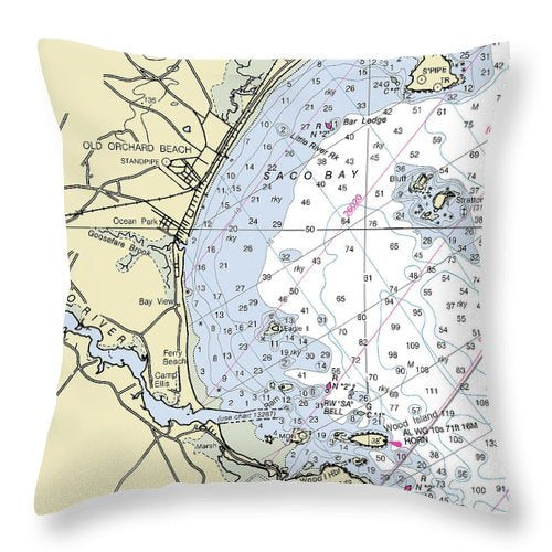Saco Bay Maine Nautical Chart - Throw Pillow