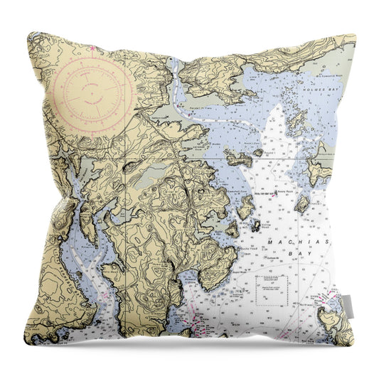 Machias Bay-maine Nautical Chart - Throw Pillow