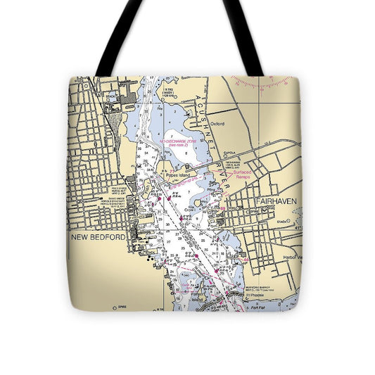 Acushnet River-massachusetts Nautical Chart - Tote Bag
