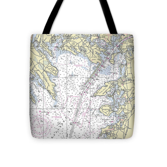 Buzzards Bay Massachusetts Nautical Chart - Tote Bag