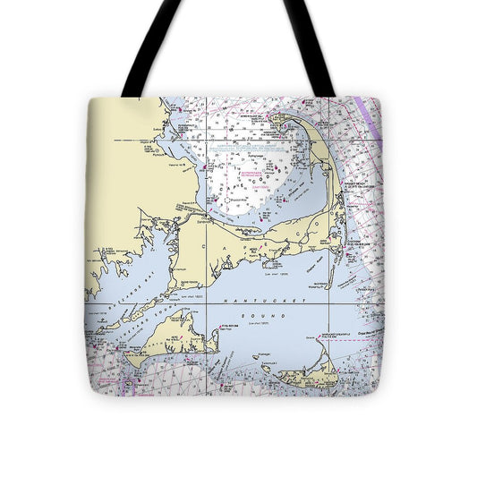 Cape Cod and The Islands Massachusetts Nautical Chart - Tote Bag