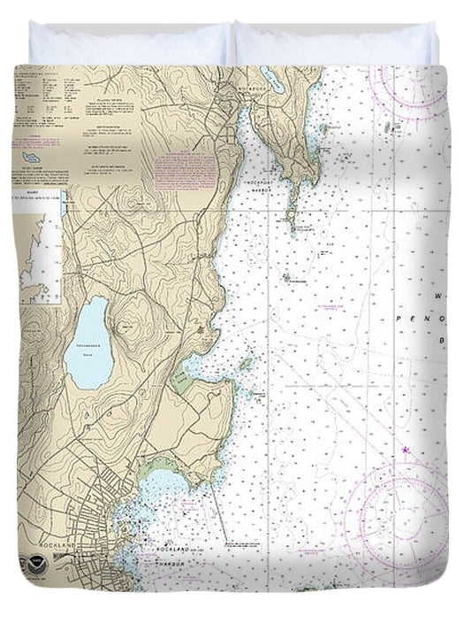 Nautical Chart-13307 Camden, Rockport-rockland Harbors - Duvet Cover