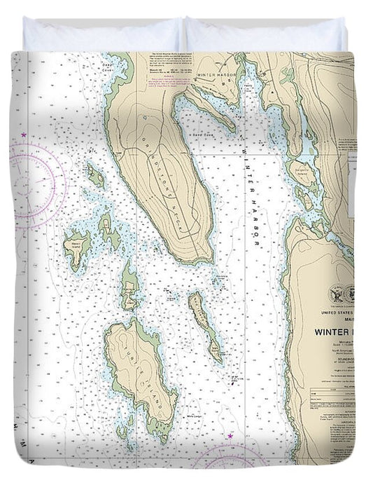 Nautical Chart-13322 Winter Harbor - Duvet Cover