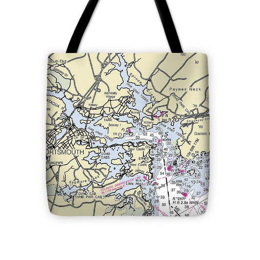 Portsmouth New Hampshire Nautical Chart - Tote Bag