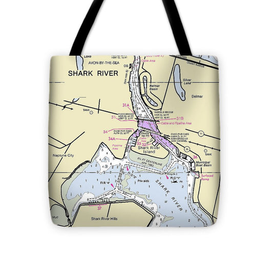 Shark River New Jersey Nautical Chart - Tote Bag
