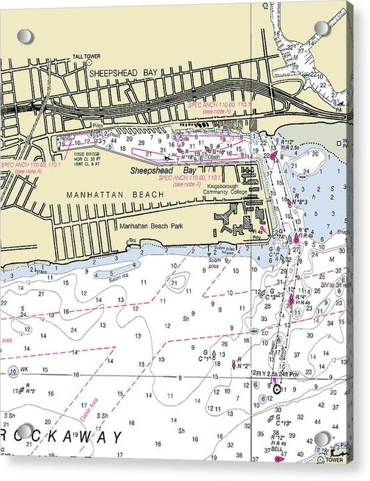 Manhattan Beach New York Nautical Chart - Acrylic Print