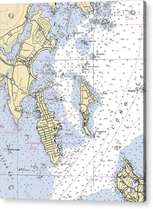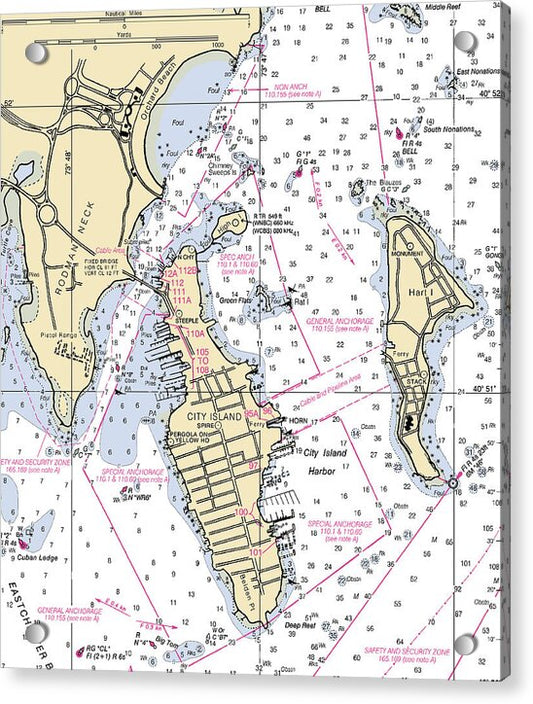 City Island -new York Nautical Chart _v2 - Acrylic Print