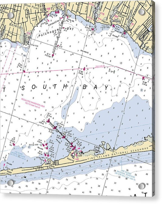 Fire Island and Mastic Beach New York Nautical Chart - Acrylic Print