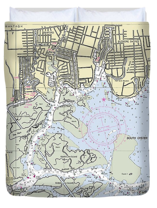 South Oyster Bay New York Nautical Chart - Duvet Cover