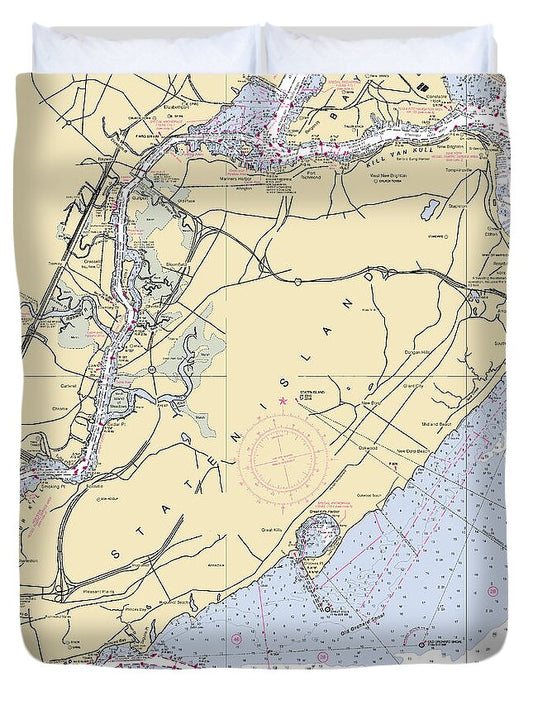Upper Bay-new York Nautical Chart - Duvet Cover