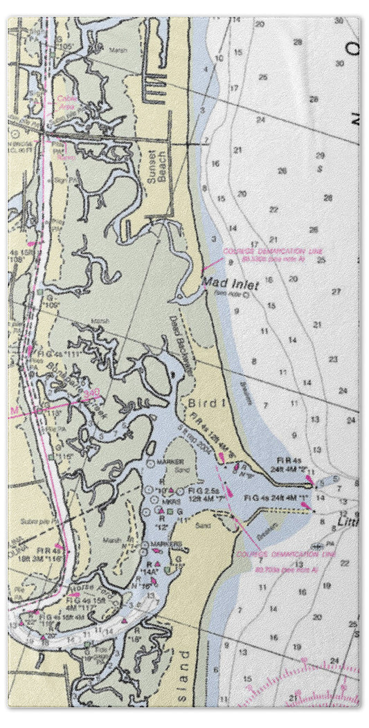 Sunset Beach North Carolina Nautical Chart - Bath Towel