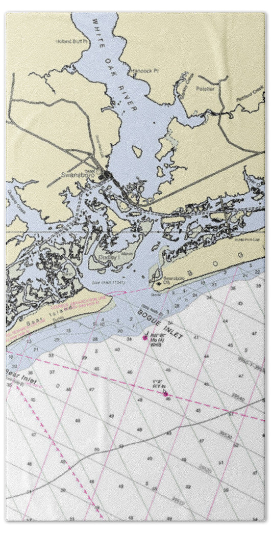 Swansboro North Carolina Nautical Chart - Bath Towel