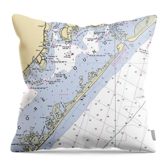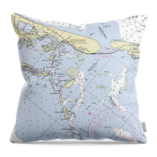 Oregon Inlet North Carolina Nautical Chart - Throw Pillow