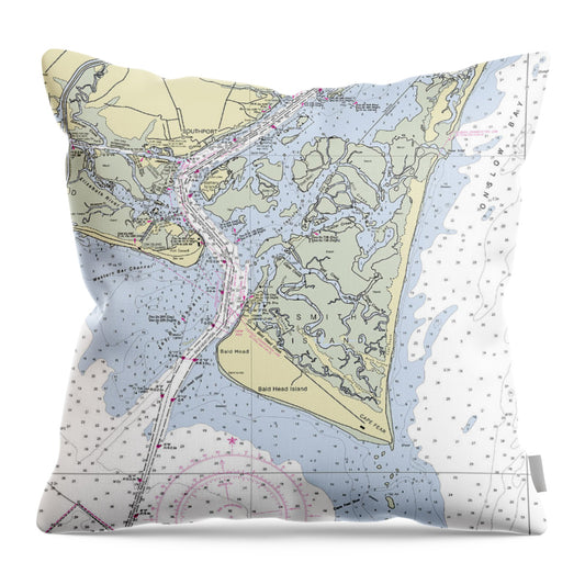 Holden Beach-north Carolina Nautical Chart - Throw Pillow