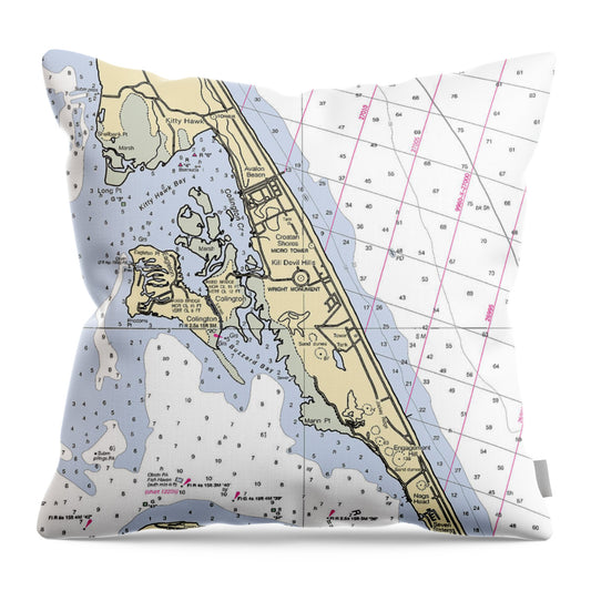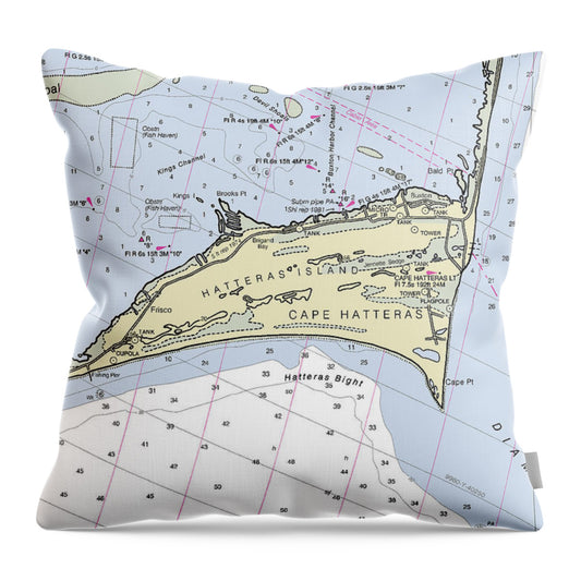 Cape Hatteras North Carolina Nautical Chart - Throw Pillow