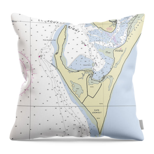 Cape Lookout -north Carolina Nautical Chart _v2 - Throw Pillow