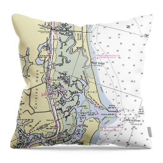 New River Inlet North Carolina Nautical Chart - Throw Pillow