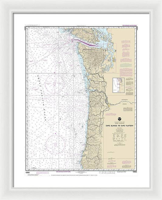 Nautical Chart-18003 Cape Blanco-cape Flattery - Framed Print