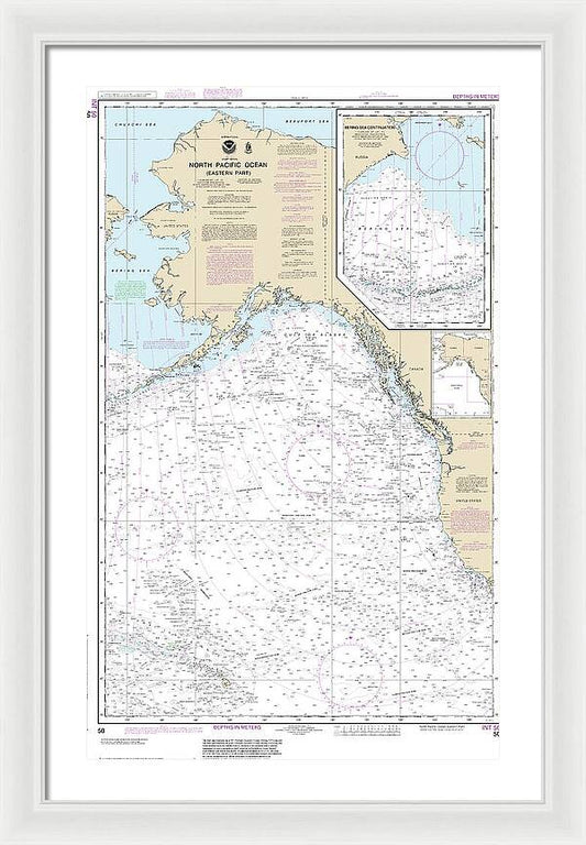 Nautical Chart-50 North Pacific Ocean (eastern Part) Bering Sea Continuation - Framed Print