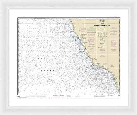 Nautical Chart-18020 San Diego-cape Mendocino - Framed Print