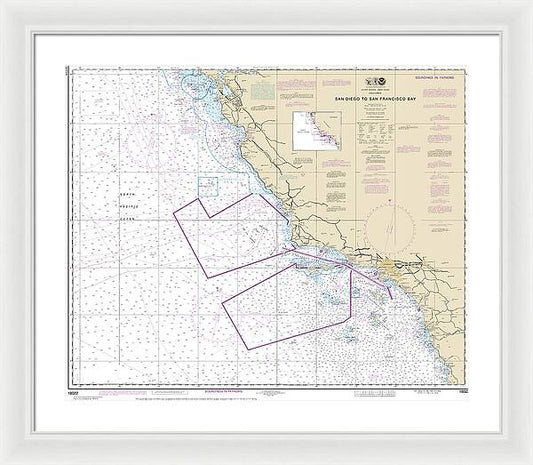 Nautical Chart-18022 San Diego-san Francisco Bay - Framed Print