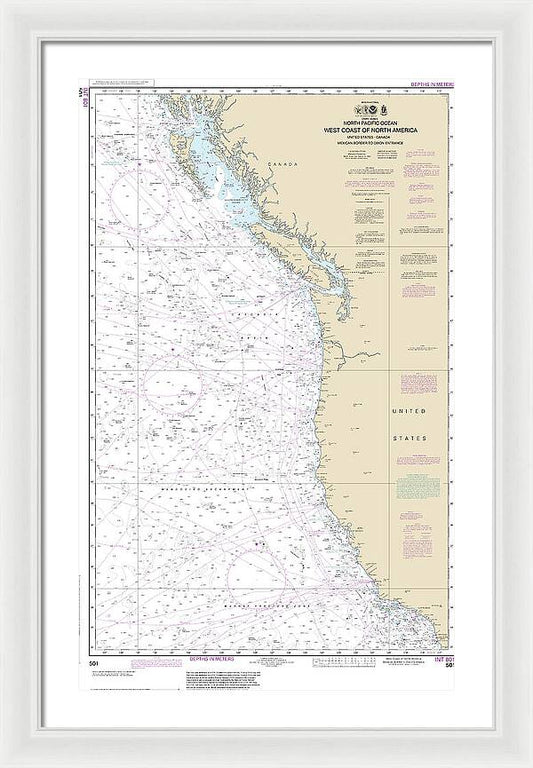 Nautical Chart-501 North Pacific Ocean West Coast-north America Mexican Border-dixon Entrance - Framed Print