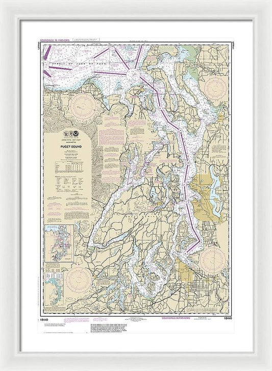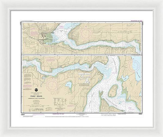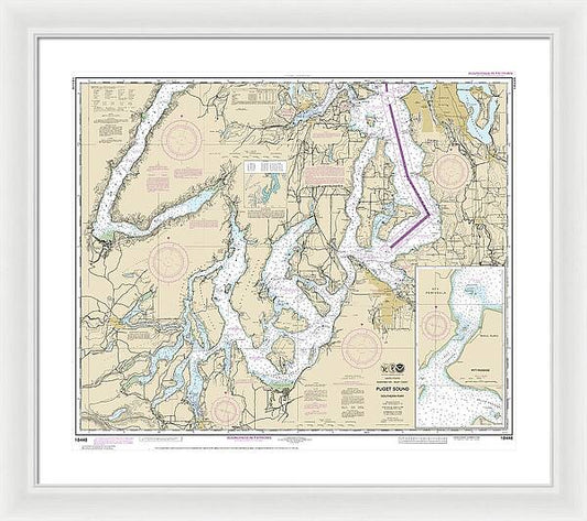 Nautical Chart-18448 Puget Sound-southern Part - Framed Print