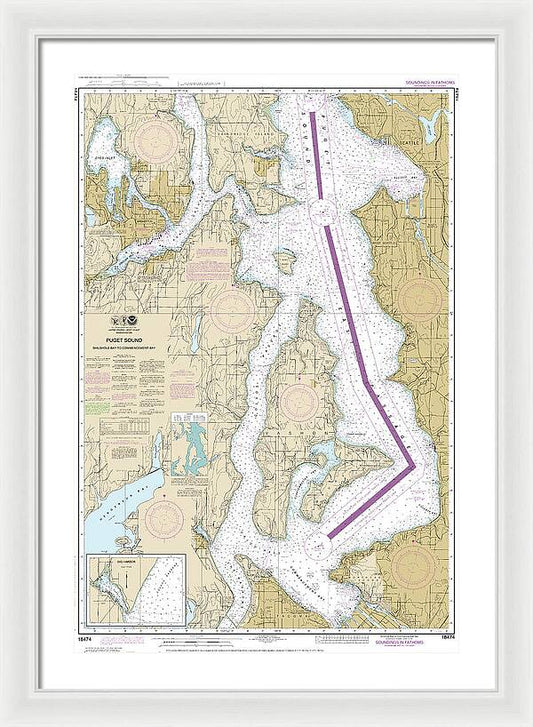 Nautical Chart-18474 Puget Sound-shilshole Bay-commencement Bay - Framed Print