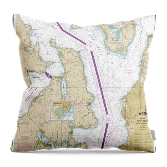Nautical Chart-18473 Puget Sound-oak Bay-shilshole Bay - Throw Pillow