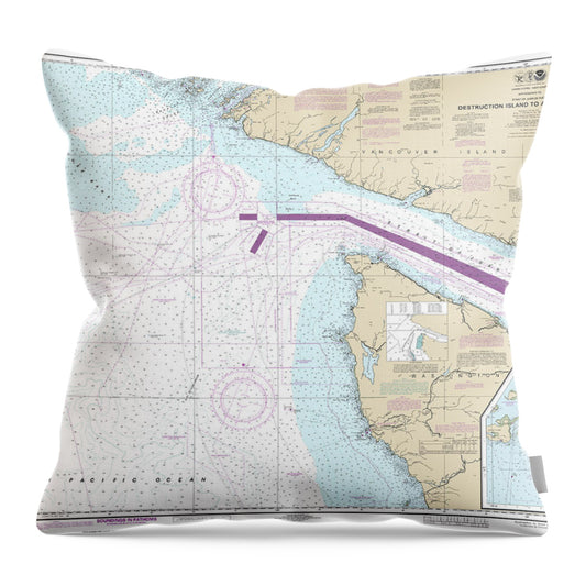 Nautical Chart-18500 Columbia River-destruction Island - Throw Pillow