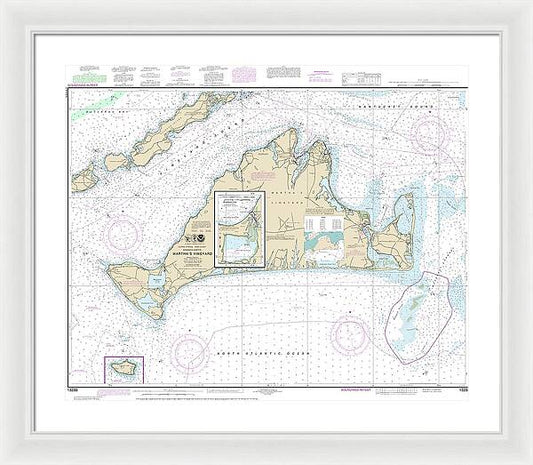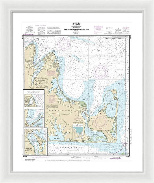 Nautical Chart-13238 Marthas Vineyard Eastern Part, Oak Bluffs Harbor, Vineyard Haven Harbor, Edgartown Harbor - Framed Print