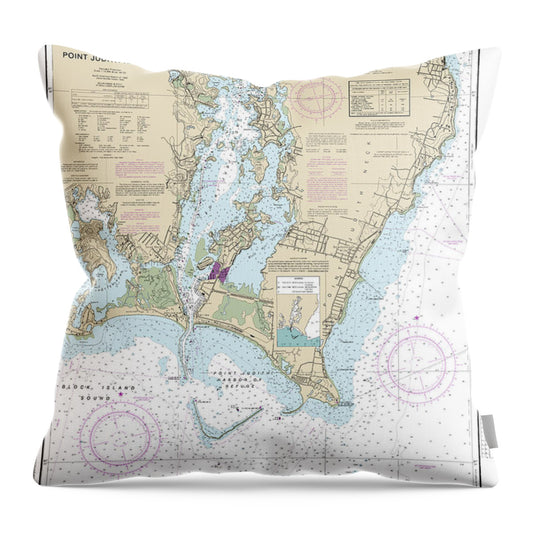 Nautical Chart-13219 Point Judith Harbor - Throw Pillow