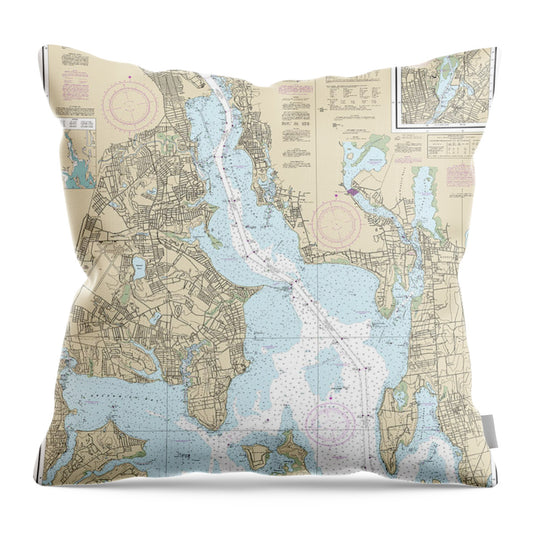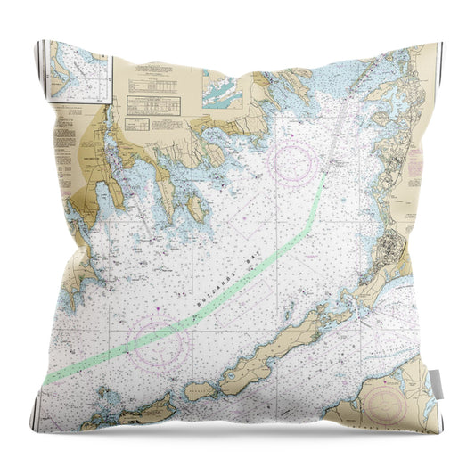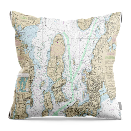 Nautical Chart-13223 Narragansett Bay, Including Newport Harbor - Throw Pillow