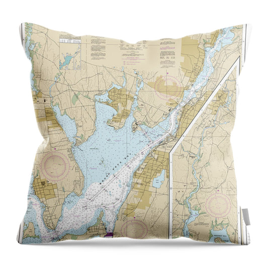 Nautical Chart-13224 Providence River-head-narragansett Bay - Throw Pillow