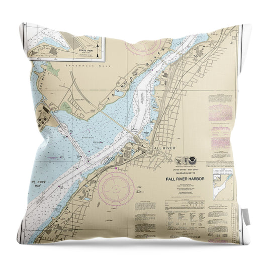 Nautical Chart-13227 Fall River Harbor, State Pier - Throw Pillow