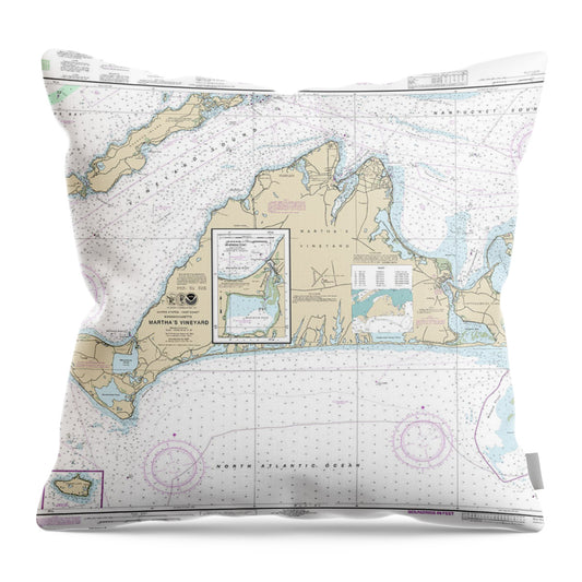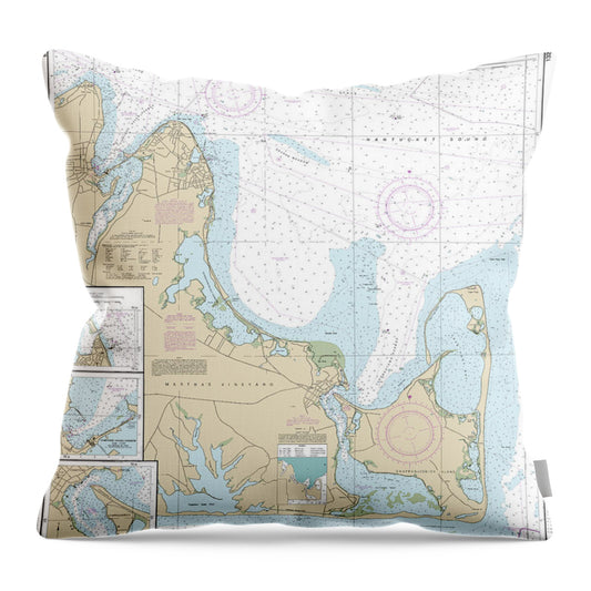 Nautical Chart-13238 Marthas Vineyard Eastern Part, Oak Bluffs Harbor, Vineyard Haven Harbor, Edgartown Harbor - Throw Pillow