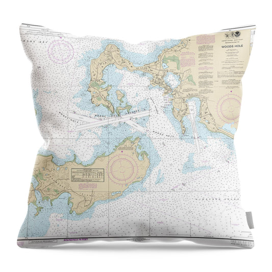 Nautical Chart-13235 Woods Hole - Throw Pillow