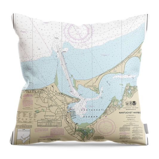 Nautical Chart-13242 Nantucket Harbor - Throw Pillow