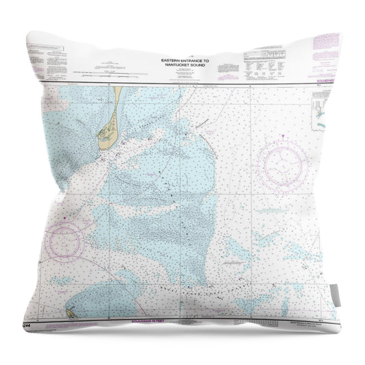 Nautical Chart-13244 Eastern Entrance-nantucket Sound - Throw Pillow