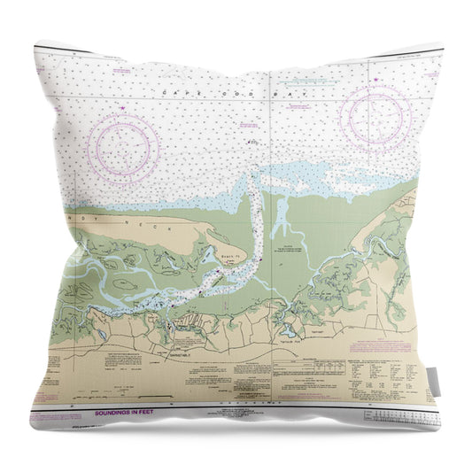Nautical Chart-13250 Wellfleet Harbor, Sesuit Harbor - Throw Pillow