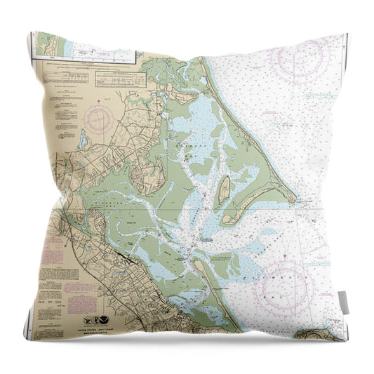 Nautical Chart-13232 New Bedford Harbor-approaches - Throw Pillow