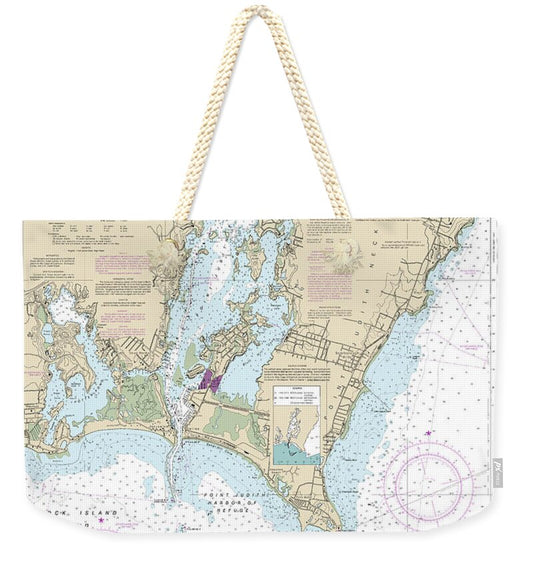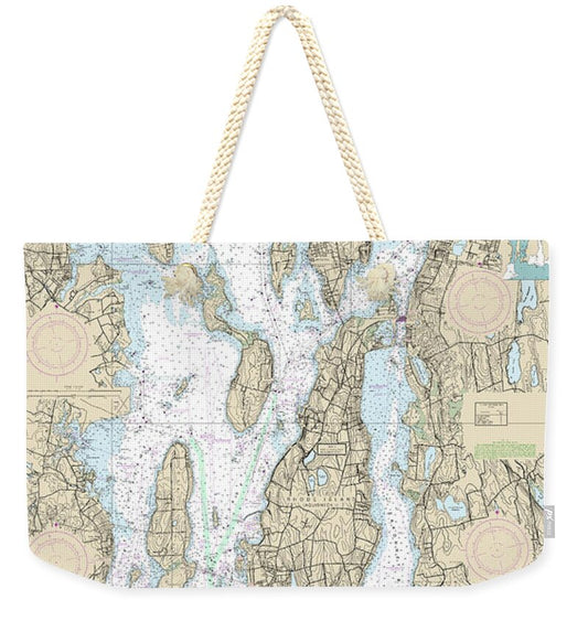 Nautical Chart-13223 Narragansett Bay, Including Newport Harbor - Weekender Tote Bag