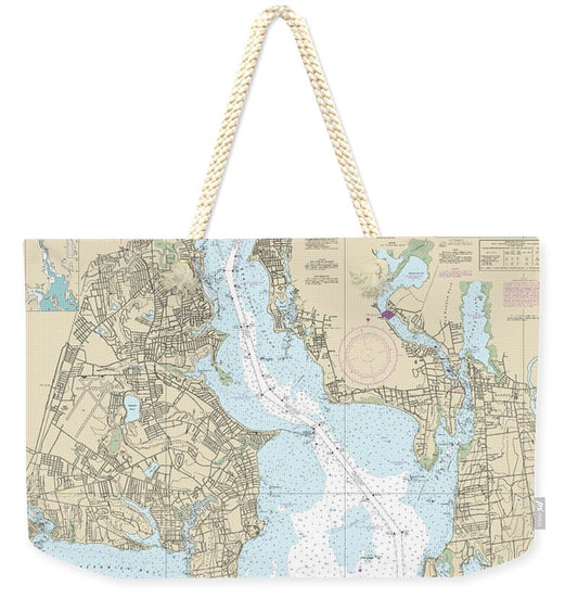 Nautical Chart-13221 Narragansett Bay - Weekender Tote Bag