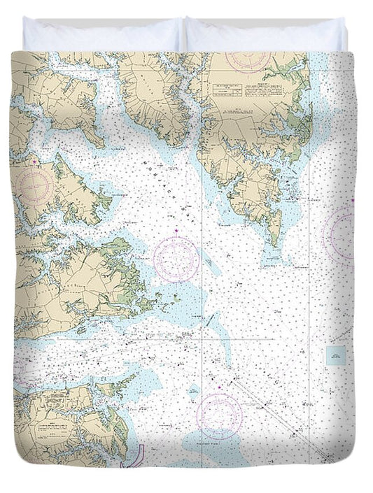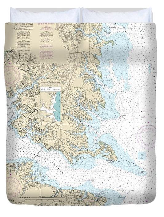 Nautical Chart-12235 Chesapeake Bay Rappahannock River Entrance, Piankatank-great Wicomico Rivers - Duvet Cover