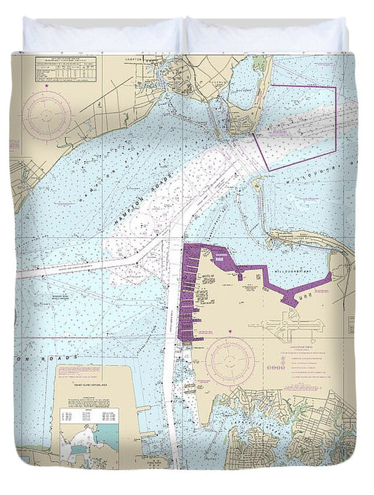 Nautical Chart-12245 Hampton Roads - Duvet Cover