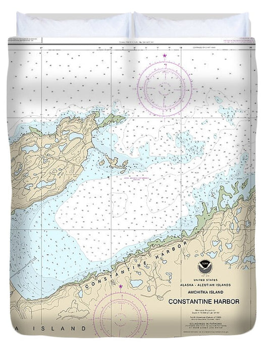 Nautical Chart-16446 Constantine Harbor, Amchitka Island - Duvet Cover