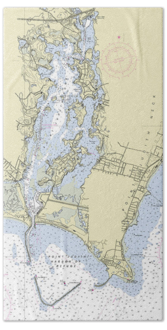 Pt Judith Pond Rhode Island Nautical Chart - Bath Towel